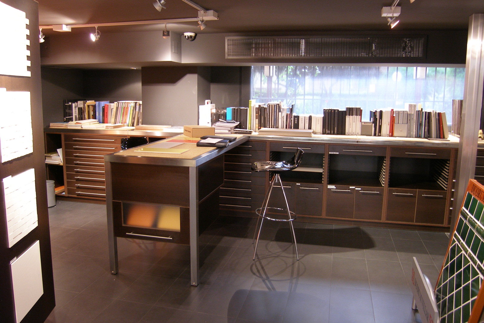 Se realizó un escaparate con las piezas sueltas a modo de exposición. Esta tienda está dividida en dos alturas, en la inferior la exposición y zona de trabajo y en la superior la oficina.